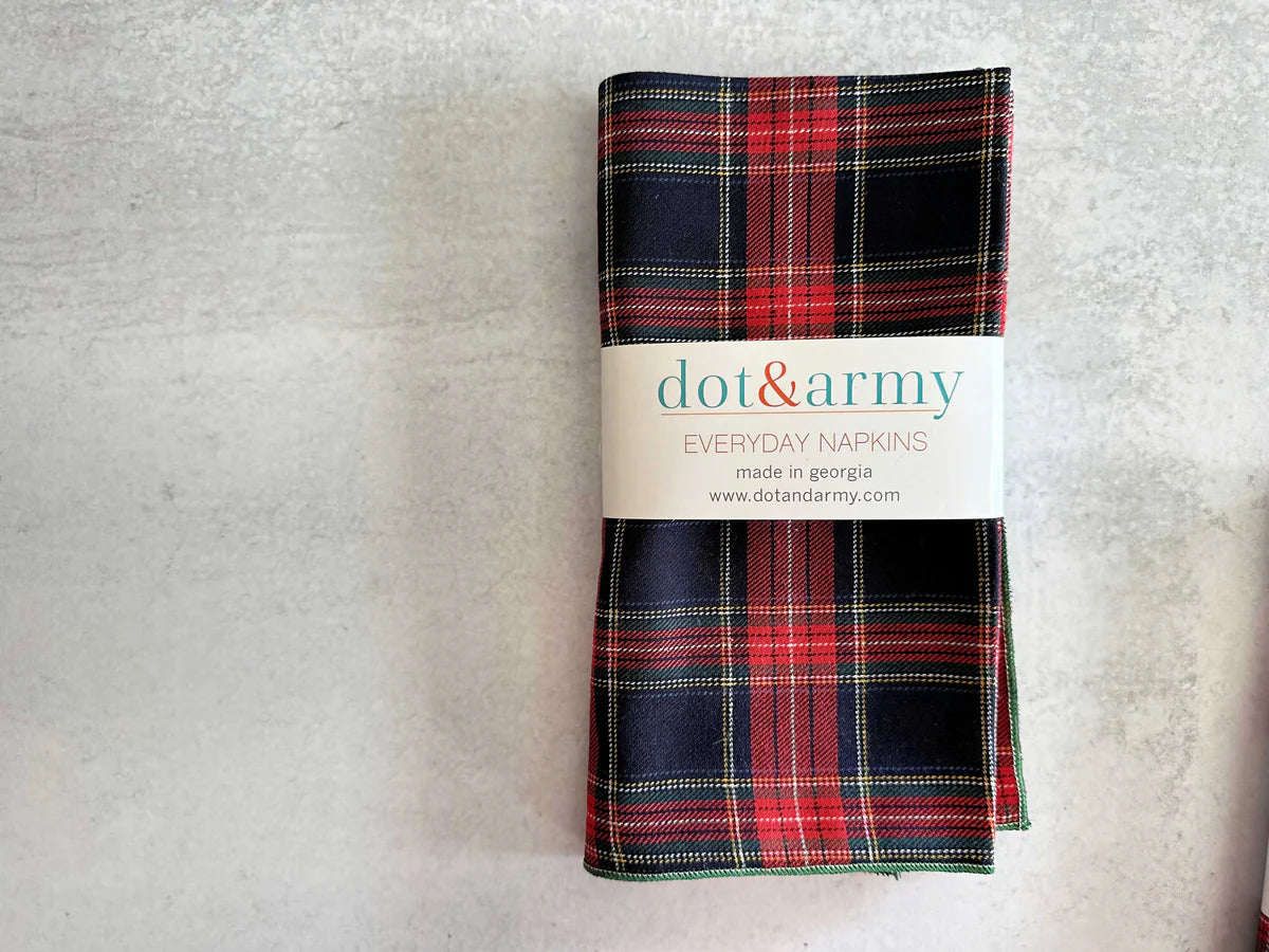 This Dot and Army tartan fabric is a medium weight cotton twill. We love it!