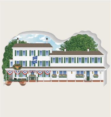 The oldest continuously operating inn in the U.S., and one of the best known structures of Essex and the lower CT River Valley. Begun as a tavern in 1776, it was built into a 3 story, 3 porch frame structure by Richard Hayden in 1801. Filled with Currier & Ives Prints, exquisite maritime paintings by Jacobsen, nautical ephemera, and a firearm collection, the ‘Gris’ is a living history of art and architecture. A portion of proceeds from this archi-block benefits the Child and Family Agency of Southeastern CT.
