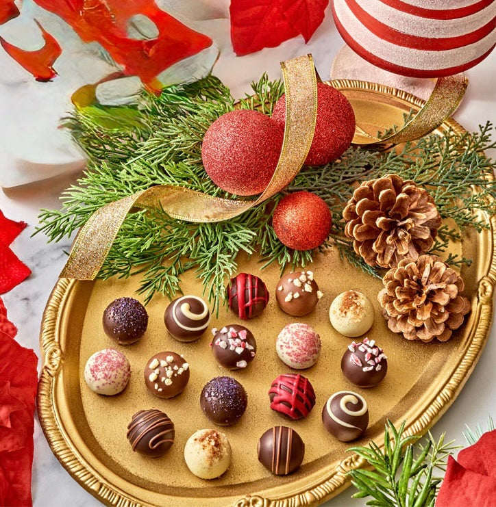NEW! An assortment of all your favorite holiday truffles including: Sugar Plum, Eggnog, Gingerbread Cookie, Peppermint and Christmas Cookie. Each truffle starts with Bissinger's European Chocolate & Heavy Cream. The ganache is naturally infused with flavors and extracts to make a truly unique holiday collection. Hand-decorated by Bissinger's artisan candy makers. 5 PC Net Weight: 2.5 OZ