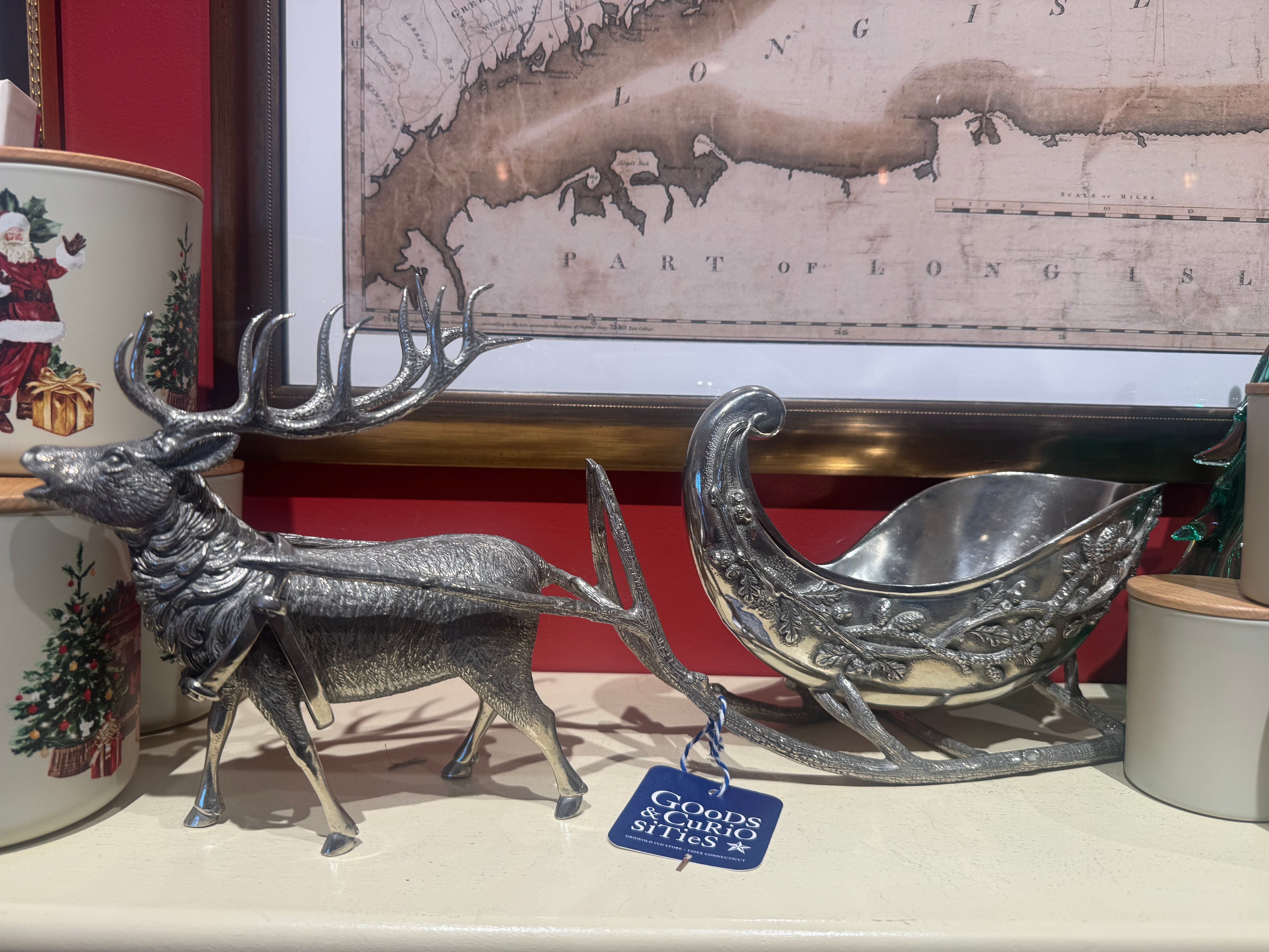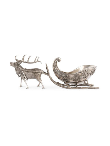Pewter Reindeer Sleigh Centerpiece