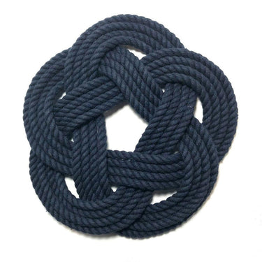Hand woven nautical trivet turkshead knot tied in custom cotton rope