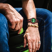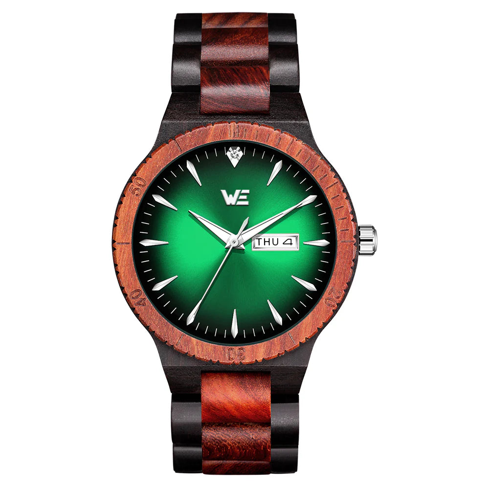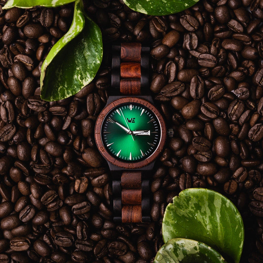 This handcrafted wrist watch features an all wooden band made from Red and Black Sandalwood.