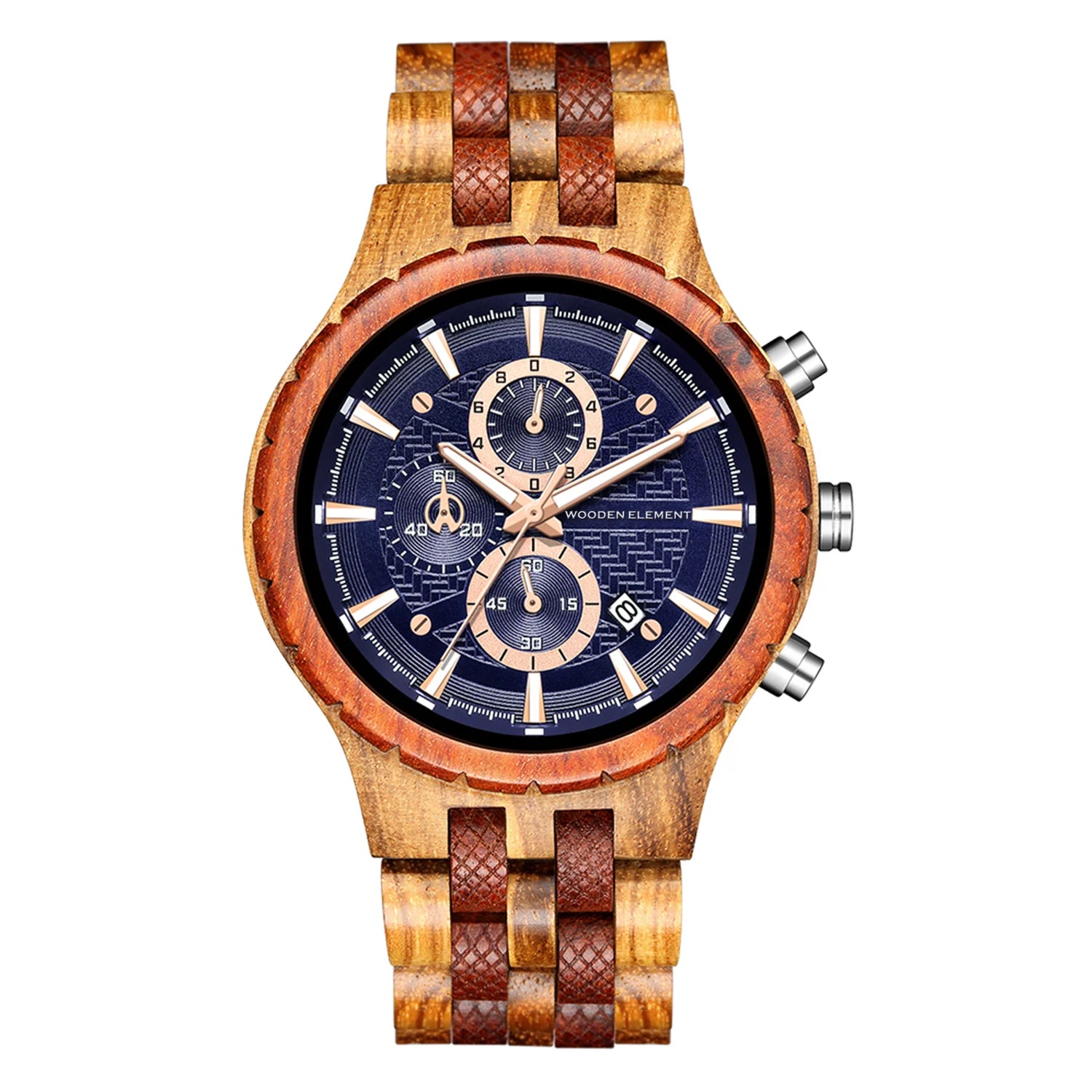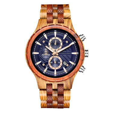 This Wooden Element watch Thanos Chronograph combines Zebra Wood and Red Sandalwood.